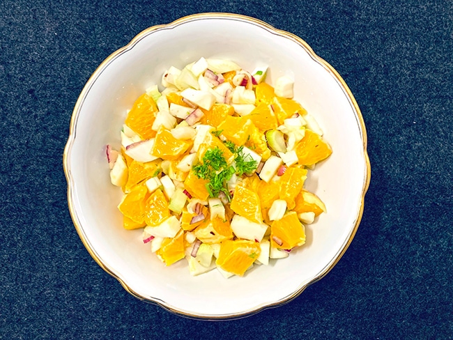 L’insalata di arance e finocchi è l’insalata ideale per l’inverno. È veloce e semplice da preparare, leggera e dal gusto fresco, e un’ottima fonte di vitamina C. Inoltre, servono pochissimi ingredienti per questa deliziosa insalata.