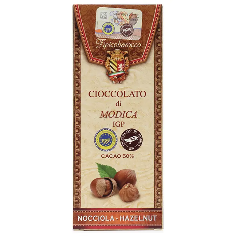 Cioccolato di Modica con nocciole: una pregiata specialità siciliana, il cui gusto unico e la consistenza particolare offrono un’esperienza di piacere straordinaria.